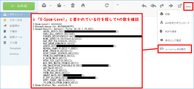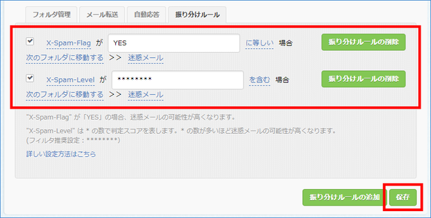 ※X-Spam-Levelは*の数をいくつにするのか、各自で調整をしてください。推奨設定は********(*が8個)です。