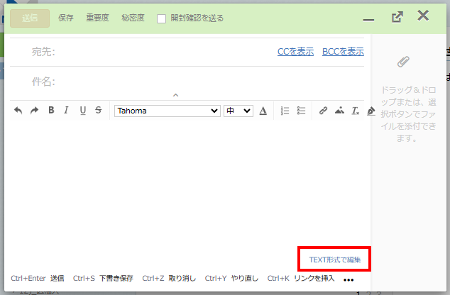 メールの作成形式にはTEXT形式/HTML形式があります。学園Kmailの場合、通常はHTML形式ですが、